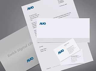 友達光電的企業識別標誌是以企業英文名稱「AUO」為視覺造型。元平設計以英文為標誌設計主體,藉以直接表現友達光電的國際觀,與國際化的積極企圖心。「AUO」的字形設計,壯碩、穩健,用以表達企業的根基紮實、雄厚。同時「AUO」字形的排列緊密、一體成型,代表企業體與客戶、員工之間,牢不可分的互動、互長的密切關係。